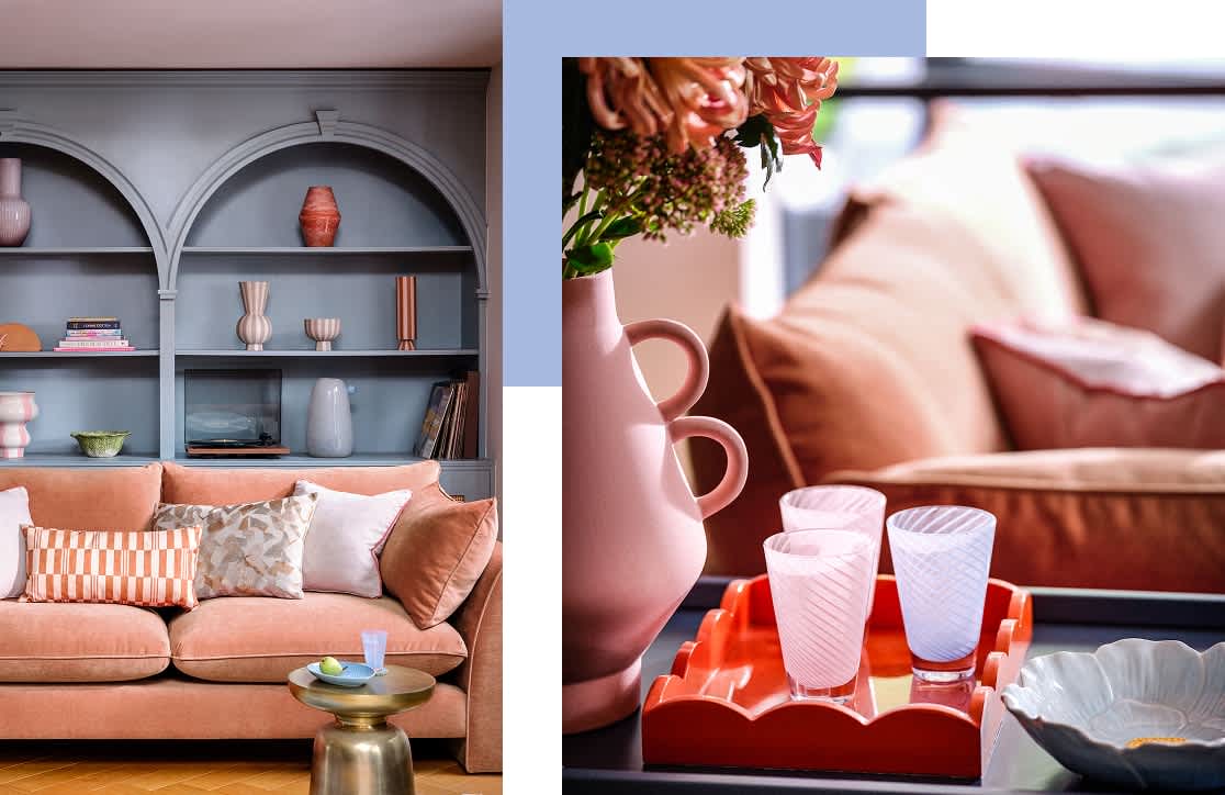 The Ziggy sofa with its oh-so-softly curvaceous arm design (which looks especially great as a generous four-seater) matches the relaxed mood of the moment. It looks especially contemporary upholstered in a short pile textured chenille in Coral. Pair it against joinery in powder blue to evoke clear summer skies and golden hour sunsets. Play with shaping too – a sofa with simple, contemporary lines like this looks good contrasted with elegant arched shapes, such as wall-to-wall shelving with decorative finishing or a rug patterned with modern-retro graphics. To allow bold shapes to really sing in a space, remember to pare back, removing superfluous items and instead layering in fewer pieces with more generous silhouettes that the eye can rest on. Add a bar cart, or turn an alcove into a drinks station, complete with elegant crystal and cocktail spoons, and you’re summer-ready.
